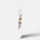 Slim white iPhone case with a colorful collage featuring faces, flowers and fruits.