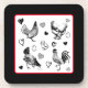 Chicken themed Christmas coasters. Cute black and white with red details chickens and hearts. Adorable gift for anyone who loves chickens! generativecontent