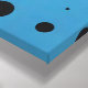 A fun and lively design of colored paper shapes collage with black dots.