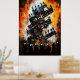 A chaotic cityscape tilts on the edge of destruction, as faceless figures stand both above and below, witnessing the collapse. Explosive brushstrokes, bold blacks, fiery oranges, and deep reds create a powerful sense of instability and tension. This contemporary expressionist artwork reflects themes of societal decay, struggle, and transformation, making it a striking piece for lovers of dystopian abstraction, intense symbolism, and avant-garde urban expressionism.