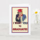 College Send Off Message from Uncle Sam, encouragement greeting card with I Want You to Graduate text on the cover. A vintage illustration of Uncle Sam with a red graduation cap added. Tri color patriotic frame in red, blue, and white. Message of encouragement inside. Art, image, and verse copyright © Shoaff Ballanger Studios.