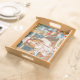 This is a well made, sturdy wooden tray with a flawless black finish and lovely map on the tray surface. It is both vintage & modern at the same time. Looks exactly like the photo; does not disappoint. So nice to find something of quality individually made and not the mass-produced 'shabby chic' merchandise seen in stores. I am so pleased to be able to give this to my college-age niece for her birthday. This can be used as a tray to hold jewelry or toiletries, or hung on the wall as art. The map surface is sealed (it is slightly shiny) so would be moisture resistant. It is well worth the asking price but I was able to apply a sale code as well. Very happy with my purchase. Map is crisp & clear and sealed with a water-resitant finish.