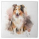 Admire the beauty of this stunning Collie Lassie dog captured in a beautiful watercolor painting. Perfect for any dog lover, this ceramic tile will add a touch of charm to any room in your home.