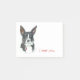 Beautiful balck and white collie mix breed dog with EAR! titel: "I Hear You". self stick Post it notepad with a sensitive, compassionate message. I hear you. Original watercolor pet portrait by Diane Heller, www.YourDogPortrait.com