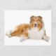 Brighten someone's day with a card! This charming postcard features a portrait of a happy tan and white Collie puppy dog highlighted against a creamy white background. She is ready to help you send greetings to family, friends and customers.