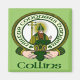 Your Collins clan motto badge features the famous Irish claddagh symbol, St. Patrick and traditional shamrocks with your historical ancient family motto in glorious and vibrant color.