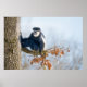 Amid the vibrant colours of autumn, a colobus monkey perches high in the trees, surveying its surroundings. With its distinctive black-and-white coat contrasting with the golden leaves, this arboreal primate embodies the serene beauty of the season.