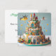 FUN FOR KIDS, COLORFUL BLOCKS TOY THEMED KIDS BIRTHDAY LAYER CAKE ON THE FRONT OF THE CARD. COMPLETELY EDITABLE COPY ON THE BACK.