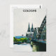 Beautiful retro vintage Cologne postcard painting showcasing the Cathedral (Kölner Dom), Hohenzollern Bridge over the Rhine, Cologne, Germany. Unique souvenir and gift idea for every tourist.