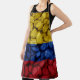 Great color and even though I ordered the kid size, it covers well enough to use during the holidays. I am not a big woman and prefer a shorter apron. I stand 5"6" and the length of the garment goes to mid-thigh. The tie straps fit well at my waist and even though there is no neck strap adjustment, the opening is plenty big enough. I am happy with the size and fit. I am sharing my apron with my 10 year old grandson, too! The color is vibrant and looks good, as shown on the website. The stitching looks strong and reinforced. Photographed is front side and back side of the apron, reinforced straps and coloring. My phone camera may not be the best at showing the details.