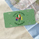 This Colombia, Ireland, and United States of America shamrock features a different flag in each leaf. On top, in circular, dark green, Celtic style letters are the words THREE CULTURES. On the bottom, in similar lettering, are the words ONE YOURNAME. Place your name on the appropriate place for a customized look. Need a personalized gift? Just add someone else's name. All of this design has a background of light green squiggly squares. Designed to celebrate St. Patrick's Day, 4th of July and Colombian holidays.