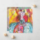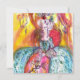 Colorful,whimsical,vibrant Venetian masquerade character. Sophisticated blonde woman is sitting with a feathered mask in hand with sparkling gold,silver, blue,teal fabrics of a baroque masked ball costume with feathers and floral sparkles in white,pink, yellow colors .