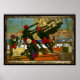 Originally created in 1926 by graphic artist Kenneth D. Shoesmith for the British Empire Marketing Board, this poster depicts longshoremen in Ceylon (today’s Sri Lanka) loading cargo into the hold of a British merchant vessel in the port city of Colombo as a ship’s officer looks on.
