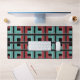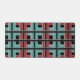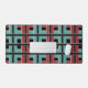 Colonization desk mat. Colonization is an abstract and grunge design created by Anna M. Asbury and consists of red, black, and turquoise lines running vertically and horizontally on a black background.
