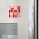 An attractive hard edge abstract composition in reds, pinks, yellows, browns and grays.