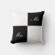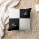 Throw pillow shown in black/white color blocks with Mr/Mrs text. Customize this item or buy as is.