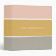 A stylish color block binder with 3 horizontal stripes in blush pink, mustard gold and gray in a modern minimalist design style. The text can easily be customized with your name for the perfectly personalized gift or office accessory!