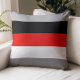 Modern color block throw pillow in red, dark and light gray, black, and white.