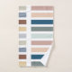 Personalized bath towel with matching hand towel and wash cloth. Stylish color block striped pattern with trendy color palette of earthy and spa colors in bold, muted and pastel shades of blue, rust, green, grey, salmon and yellow. The template is set up for you to add your family name, house name or business in modern typography.