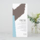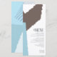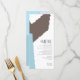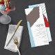 Abstract color blocking in a cheerful winter color palette of blues and brick red provides a striking background for the pieces in this contemporary wedding suite. The wedding 'Menu' card shown here is an eye-catching addition to your table decor. Add your menu selections, initials and wedding date using the provided template. Search ID740 to see other color options and additional products with this design.