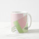 Abstract color blocking in a cheerful color palette of rose pink and spring green provides a striking background for the pieces in this contemporary wedding suite. The mug for the bride shown here has the optional text 'MRS' in a bold modern font style. Easily adapt for everyday use by adding a name or monogram to replace the supplied text image. Search ID740 to see other color options and additional products with this design.