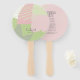 Abstract color blocking in a cheerful color palette of rose pink and spring green provides a striking background for the pieces in this contemporary wedding suite. The hand fan shown here is perfect for the bride who is planning a modern spring wedding. Add your wedding party list and/or program, initials and wedding date using the provided template. Search ID740 to see other color options and additional products with this design. is a great spot to add.