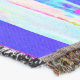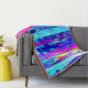 A quality printed throw has its advantages. This is a much finer weave throw than its loopier cousins, and though lighter, it is worth the investment for custom room accessorizing. The back is much prettier than the typical brown, and the fringe on the long sides very vivid, the selvage nicely done. Before photographing, I washed the throw in cold water, delicate, with a thicker woven throw the same size. On tumble dry low, this throw was dry in half the time as the other. This is a very practical quality if you use throws for furniture covers or to wrap up in frequently. The sleekness of the fabric makes it a great layer for accenting or protecting without the feeling of sitting on too much stuff. Perfect for napping or when you feel a light chill coming on. The color printing is beautiful and on this fabric, matched the design and color of my Photoshop image. This is an advantage for blending room fabrics and colors. The fringe on the short sides prints the colors from the design image and therefore varies from the side fringe. I streaked a white fractal line through the plaid pattern to give the illusion of weaving. This printed as crisp as an illusory thread, and put some white in the short side fringe, showing another advantage of print vs loomed- for artistic purposes, line lines, detail, and color integrity can be planned and preserved. My loomed throws have color limitations and more of a needlepoint texture. Print throws reproduce an exact image. The throw felt a little stiff straight out of the package, but this went away in the first delicate wash. Of course I searched the wash water for ink or bleeding and there was none.