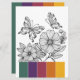 Dive into the rich world of art therapy with our elegantly designed coloring card, now available in a generous 6.5" x 8.75" format, perfect for adult women who cherish creativity and relaxation. This card showcases exquisitely detailed butterfly line art, complemented by a thoughtfully selected color palette guide. Featuring deep hues of hunter green, purple, maroon, orange, and marigold, each butterfly and flower vibrantly comes to life, creating stunning visual art through unique color combinations.