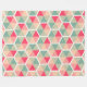 A geometric pattern made up of six sided hexagons divided by a narrow white space each divided into six color segments in five harmonious colors. Each horizontal hexagon is systematically rotated by 60 degrees to it's immediate neighbor creating a nicely varied pattern.
