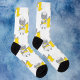 Are you looking for a gift for the cat lover or color guard enthusiast in your life? They'll love these socks that has a pattern of gray cats dressed in a yellow and white color guard uniform with a yellow flag.