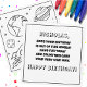 This Color It flat birthday greeting card features a delightful outer space theme, perfect for young children and space enthusiasts alike. The front of the card showcases a whimsical black-and-white illustration that invites the recipient to color it with their crayons or markers. The design includes a rocket ship soaring through space, surrounded by various celestial bodies such as planets, stars, and the Earth. The playful and imaginative artwork is ideal for sparking creativity and providing a fun, interactive birthday experience. The back of the card carries a cheerful message: "(Custom name), Hope your birthday is out of this world! Have fun today and color this card your very own way. Happy Birthday!" Both the personalized name and the "Happy Birthday" greeting appear in white text with a black outline, allowing them to be colored in as well. This card is a wonderful choice for a birthday celebration, combining the joy of receiving a personalized greeting with the engaging activity of coloring.