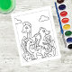 Young dinosaurs with eggs for children to color in. Useful ideas - Use as entertainment activity at parties, party favors, mailing to friends, mailing to grandparents from grandchildren, or as cheerful wall or fridge art. Great for parents, children, teachers and young students.