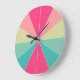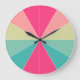 A clock face divided into 12 x 30 degree segments each divided with a white line and in a palette of 5 colors with adjoining segments at the top and bottom using the same color creating symmetry and adding emphasis to the hours and half hour, looking rather like a pie chart.