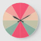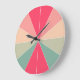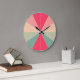 A clock face divided into 12 x 30 degree segments each divided with a white line and in a palette of 5 colors with adjoining segments at the top and bottom using the same color creating symmetry and adding emphasis to the hours and half hour, looking rather like a pie chart.