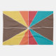 A design with 12 x 30 degree segments each divided with a white line and in a palette of 5 colors with adjoining segments at the top and bottom using the same color creating symmetry.