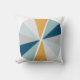 Color Slices throw pillow in shades of blue, grey and mustard yellow. Marina Blue back.