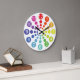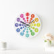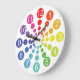 Fun and colorful vibrant color spectrum circle radial pattern wall clock featuring all of the colors of the rainbow. A perfect decor item for a child's room or a nursery.