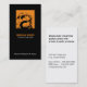 Color Square Monogram (orange) black background Business Card