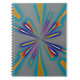 A vibrant starburst of color radiates from the center, with smooth transitions of orange, blue, purple, yellow, and cyan against a muted grey background. The symmetrical composition evokes energy, motion, and visual harmony — like a chromatic pulse expanding into space. This artwork celebrates dynamic balance, digital elegance, and the emotional power of color.