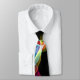 A swirl of abstract shapes and color descend the length of the front of this unique tie. Colors used include green, pink, yellow, blue, white and more! This tie will be noticed!