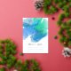 A wash of painted color blue and green; brushed handwritten style script "Grad Party" in real foil, graduate name in foil and editable details. Choose your foil color, gold, silver or rose gold