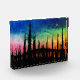 Color Wheel Skies Photo Block landscape art with tree line foreground by artist Jason Girard.