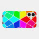 A colorful geometric abstract representation of a traditional color wheel in the shape of a star, featuring solid sections of color with thin white lines between.
