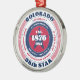 Show your state pride this holiday season with this unique Christmas ornament dedicated to Colorado, the 38th state. It has red, white, and blue patriotic colors with a circular typography design on a white background. The text includes facts about the state, such as its name, capital, state abbreviation, region, time zone, geographic coordinates, the year of its statehood, and its resident's name. It's a great gift for those who wish to celebrate their state or for those who are feeling nostalgic about their home state.