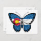 This unique design features the flag of Colorado on a beautiful butterfly. The flag contours to the details in the wings and curves around the body of the butterfly giving it a realistic look. The edges of the wings are painted black which frames the Colorado flag inside of the pattern. This wonderful flying creature is a perfect combination of nature and patriotism.