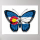 This unique design features the flag of Colorado on a beautiful butterfly. The flag contours to the details in the wings and curves around the body of the butterfly giving it a realistic look. The edges of the wings are painted black which frames the Colorado flag inside of the pattern. This wonderful flying creature is a perfect combination of nature and patriotism.