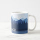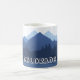 COLORADO Coffee Mug featuring mountain silhouettes in shades of blue, with customizable text. For no text, delete sample text and leave blank.