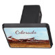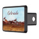 A Colorful Colorado scenic Mountain hitch cover in multiple colors depicting a mountain landscape with foliage in the foreground. Do you know someone on vacation or that has been to Colorado recently you might send them this as a gift.
