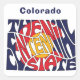 Fun and colorful typographic design with a retro feel features the state of Colorado's nickname: The Centennial State displayed within a state shaped silhouette