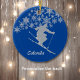 Anyone who loves vacationing in Colorado, especially during the Holiday season, will love this ornament! It features a downhill skier in front of a spray of silver snowflakes. At the bottom is text that says Colorado. The image and text are placed on a bright blue background. The back of the ornament is the same blue, with three text fields for you to customize.